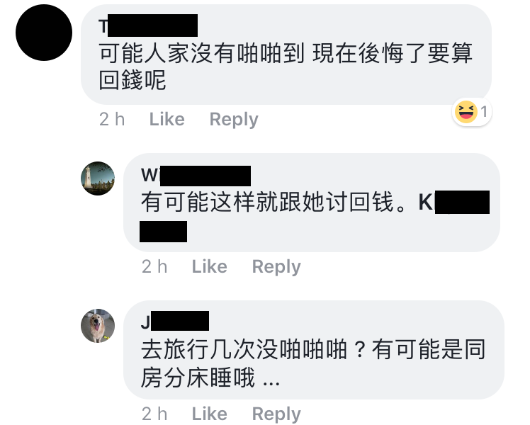 ▼ 网友神推测可能cheap精男没得到好处所以现在才要讨回钱。