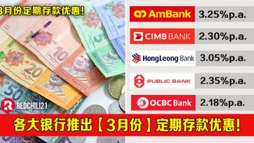 大马银行在这3月份推出最新定期存款(Fixed Deposit)促销优惠,最高可享有3.25%p.a.! […] More