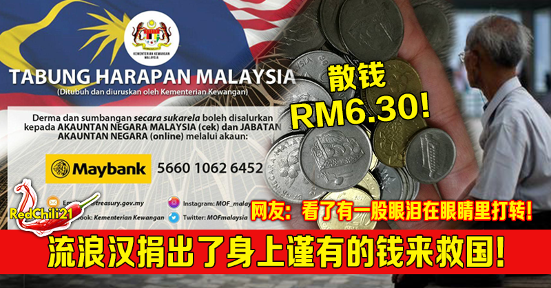 大马流浪汉捐出了身上谨有的RM6.30来救国!网友:看了有一股眼泪在眼睛里打转! 上周三,槟城有位网友在网上发文指出他在大山脚银行提款的时候突然有一位流浪汉把身上僅有的全副身家(RM6.30)拜托了他捐款给国家。很多网友看了此贴后,都表示好感功。 【福建话】ah […] More
