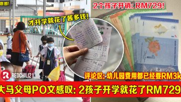 什么东西都涨价!大马父母PO文感叹:2孩子开学花了RM729!评论区:幼儿园费用RM3000! 新的学期开始啦~这两天家长们陆陆续续带孩子去学校报到,准备开学! 不过谈及孩子的教育费,光是开学就荷包“大出血”,相信很多父母都深有同感。这位家长在网上晒出购买2个孩子上学用品的账单,2个孩子开学就花了RM729! […] More