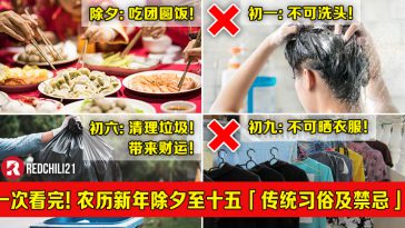 农历新年是华人重要的大日子,在过年期间也有很多传统习俗及禁忌是我们必须知道的哦! 以下小编就为大家列出「除夕至十五的传统新年习俗 […] More