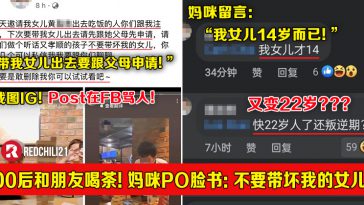 00后和朋友出去喝茶!妈咪竟PO脸书骂人:带她出去「要先跟父母申请」!不要带坏我的女儿! 年轻人相约出去聚餐、喝茶聊天都是常有的事,但如果不小心招惹到朋友的妈咪,那就不好了….. 新加坡00后女生日前和一群朋友相约出去喝茶,事后妈妈竟然在脸书PO文骂人,警告那些同行的“别人家孩子”不要带坏她的女儿。别说是莫名其妙挨骂的人,就连吃瓜群众都看懵了。 […] More